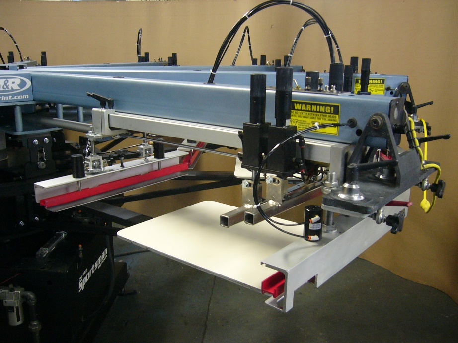 Servo Pallet Drive - Pneumatic Print Heads - Digital Control Center - 16"x18" Print Area - Microregistration - Frame Air Locks - Squeegee/Floodbar Airlocks - Squeegee Pressure Regulators - Set of Adult pallets Squeegees, Floodbars included - 13' Setup Diameter - Reconditioned w/ 90 Day Warranty - photo similar