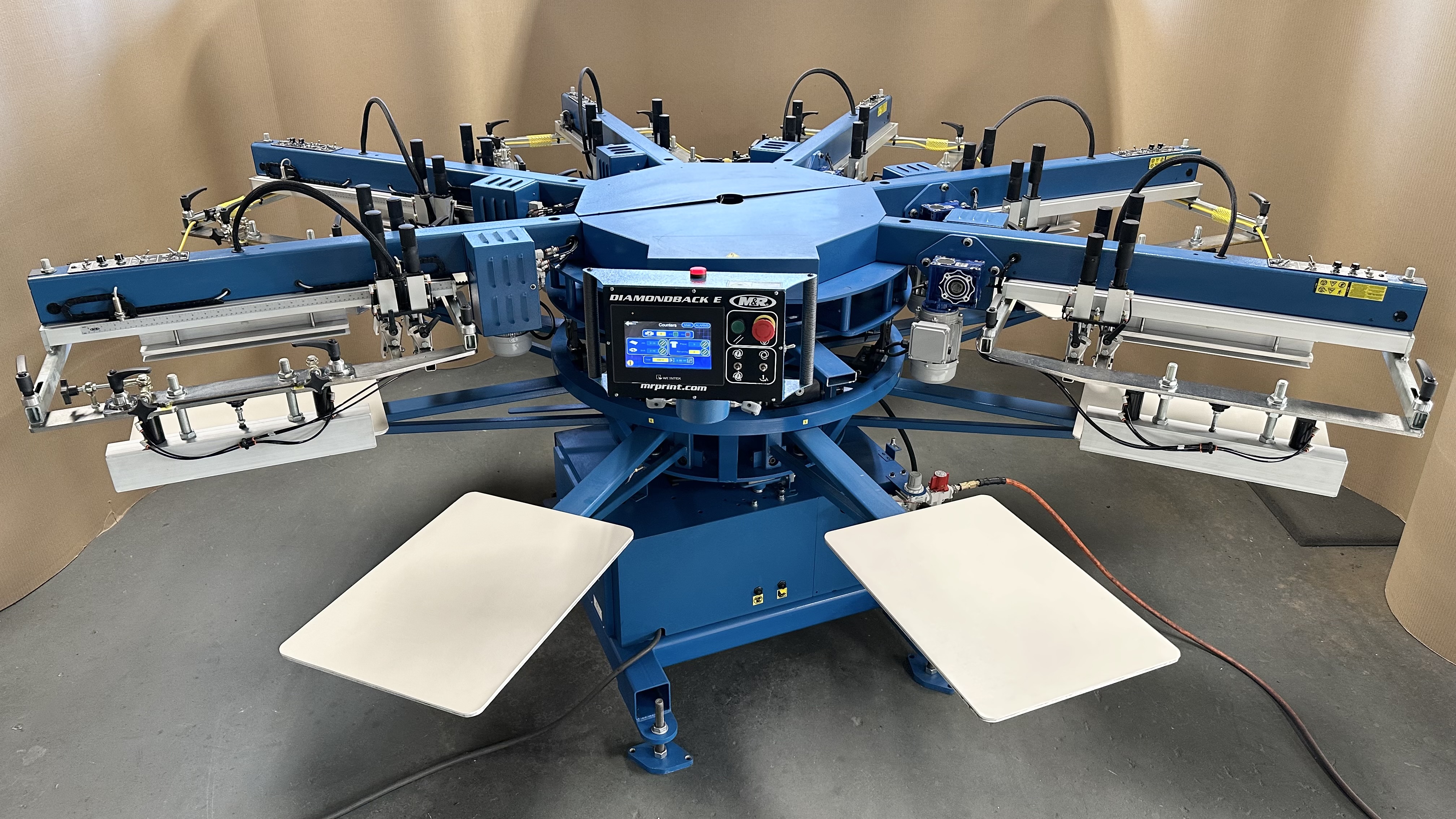Servo Pallet Drive - AC Print Heads - Digital Touch Screen - 16"x18" Print Area - Microregistration - Frame Air Locks - Squeegee / Floodbar Airlocks - Squeegee Pressure Regulators per head - LED Undercarriage Lighting - Set of Adult pallets Squeegees, Floodbars included - 10'9"' Setup Diameter -